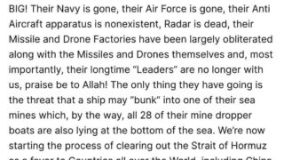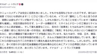 嫌儲 トランプ「フェイクニュースに騙されるな、イランは普通に負けてる」怒りの長文投稿www