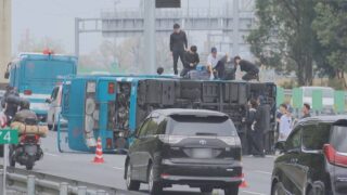 ニュー速+ 【茨城】常磐道で奈良県警の護送車が横転 警察官16人乗り数人がけが 下り友部JCT付近で「バスの単独事故」と119番通報