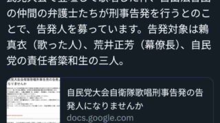 なんG 自民党大会で歌った自衛隊員、刑事告発される流れに