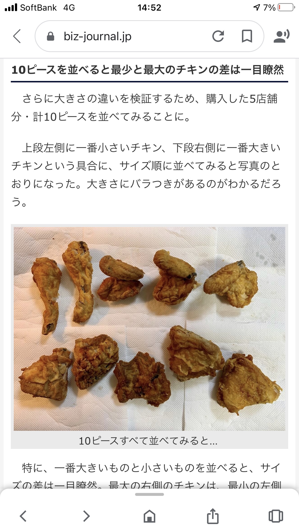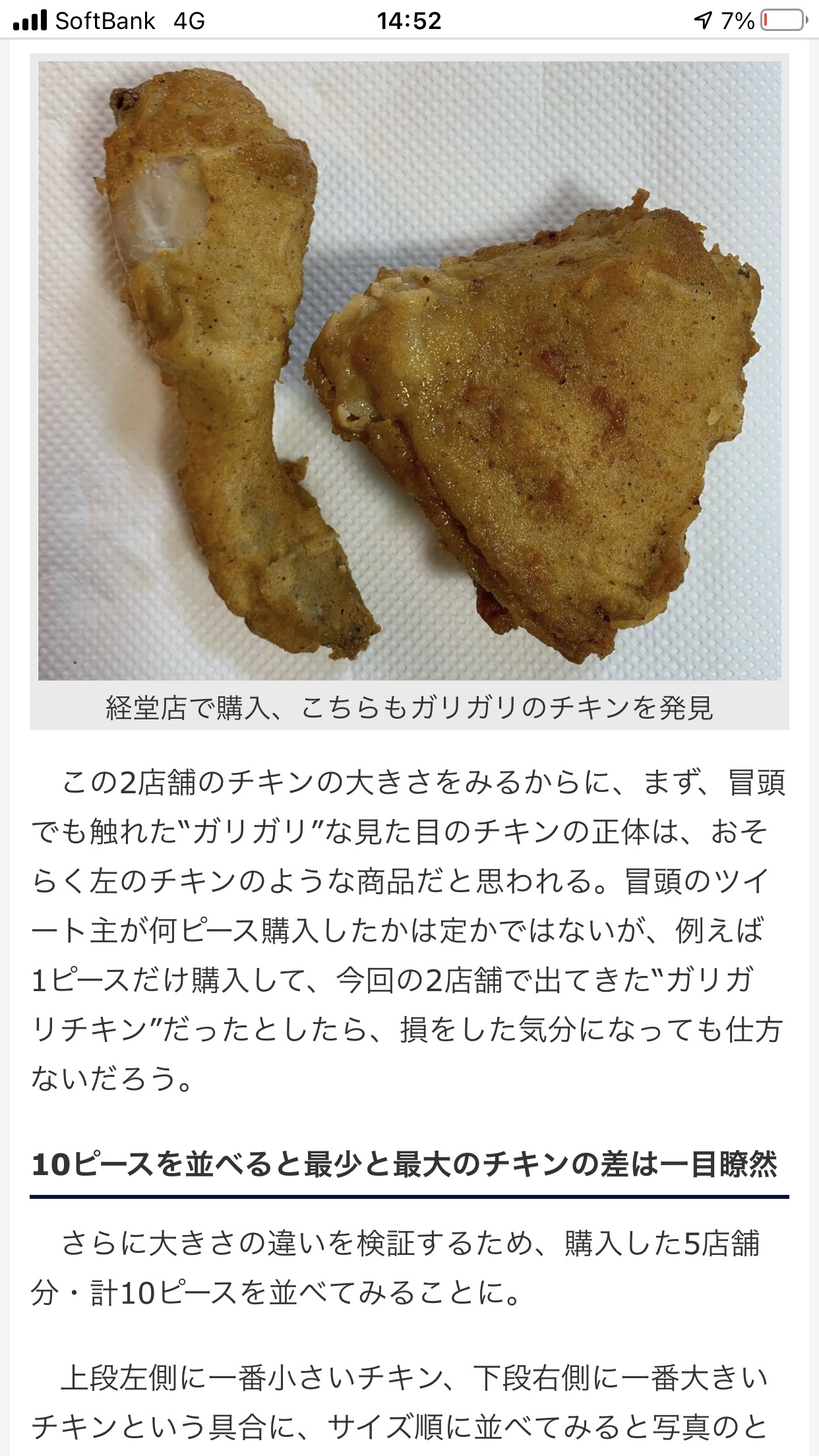 ケンタッキーに肉が少ないガリガリチキンが入ってる 大きさが違って不公平だと記事にする(画像あり)