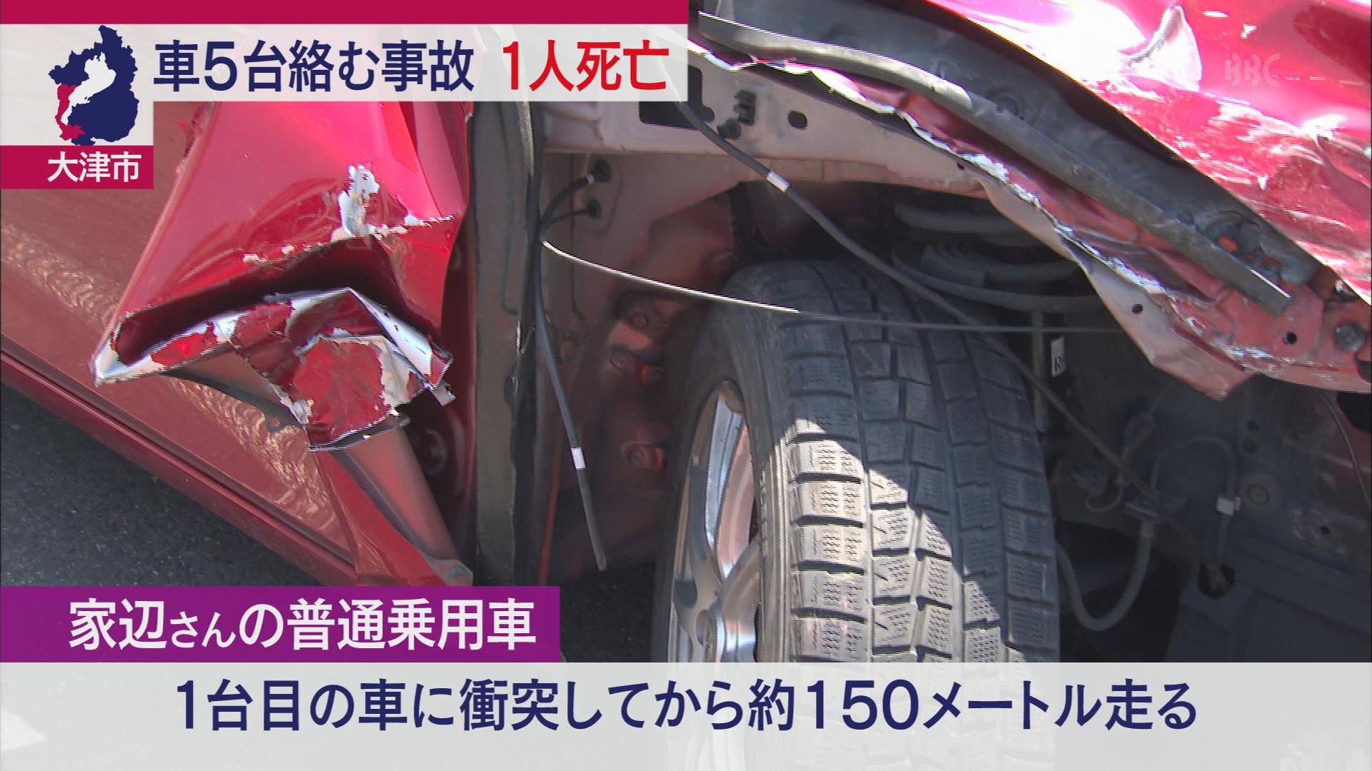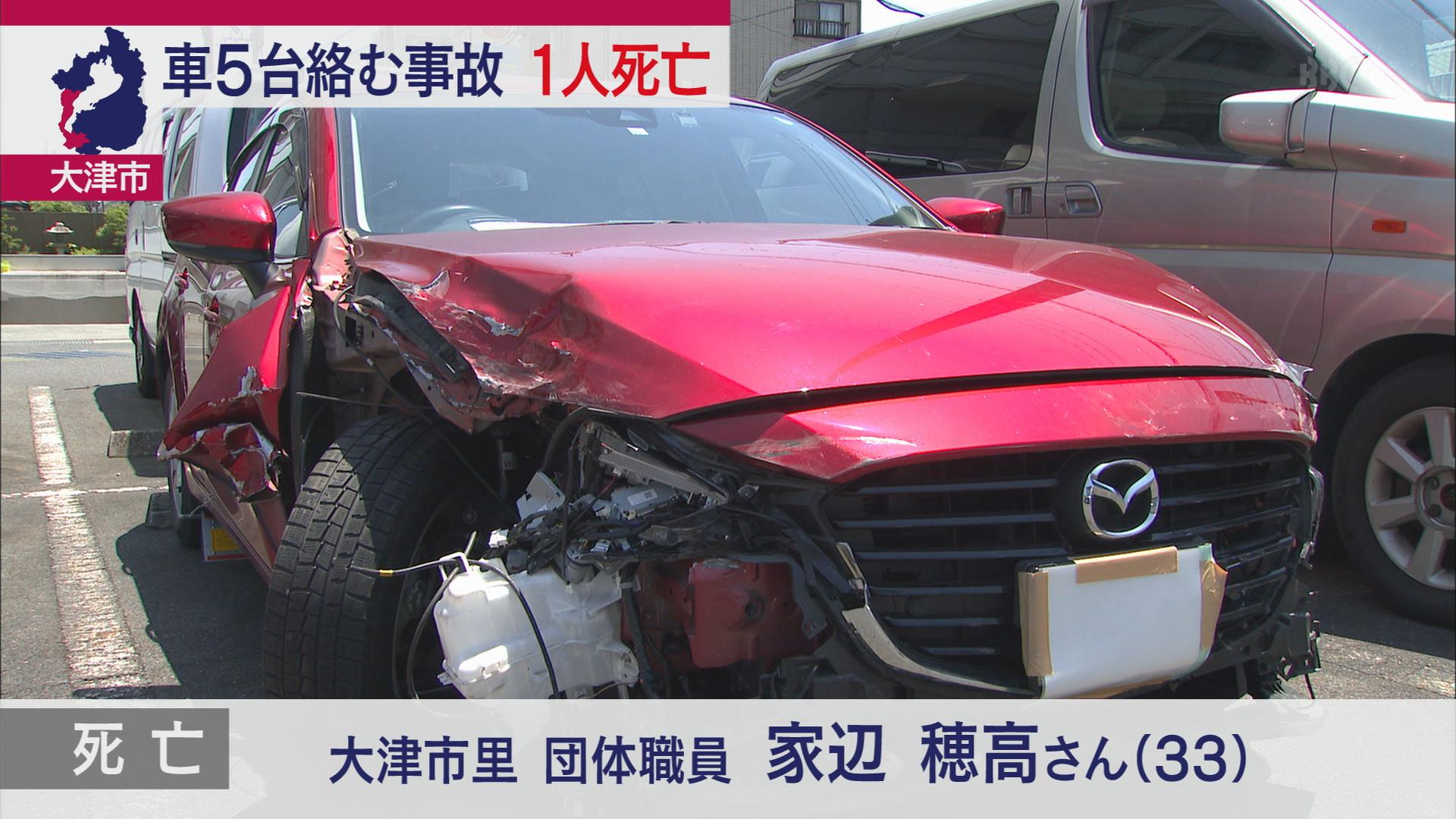 この事故で、普通乗用車を運転していた大津市里に住む団体職員の家辺穂高さん(33)が病院に運ばれましたが、約1時間後に死亡が確認されました。