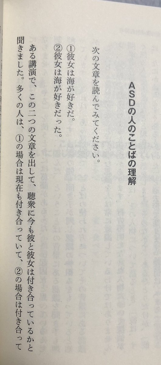 付き合っているのかって聞かれてるのにそれを無視して別の可能性があるとか言っちゃうのがASDってこと?