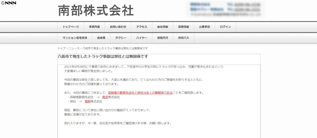 千葉県八街市で、小学生の列にトラックが突っ込み、5人が死傷した事故で、逮捕された男が勤める会社と、漢字が1文字違う無関係の会社に、100件以上の無言電話や迷惑電話がかかっており、業務に支障が出ているということです。