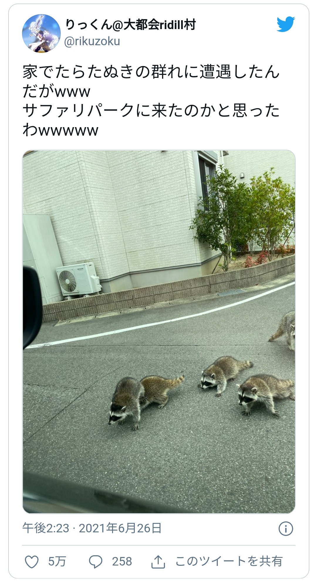 「アライグマですね…駆除しないと」 閑静な住宅地に突如として現れた動物の群れがTwitter上で話題に