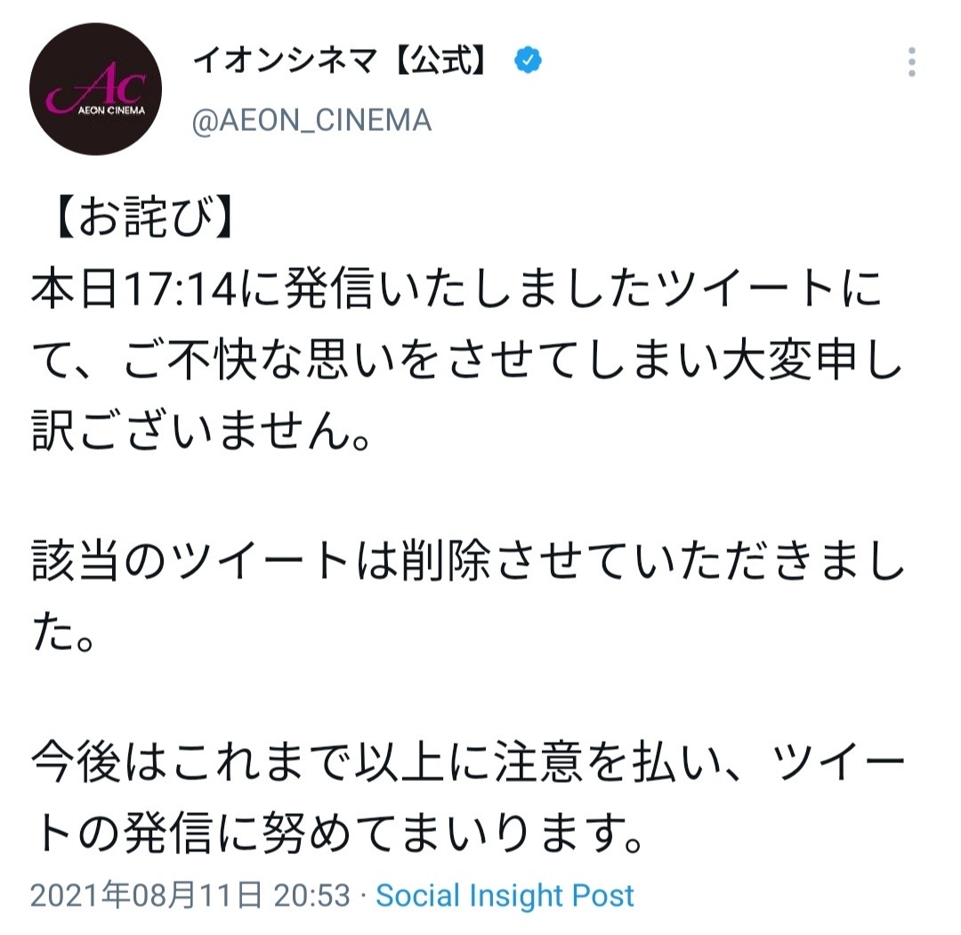 イオンシネマ公式twitter、syamuをネタにして炎上→謝罪に追い込まれてしまう