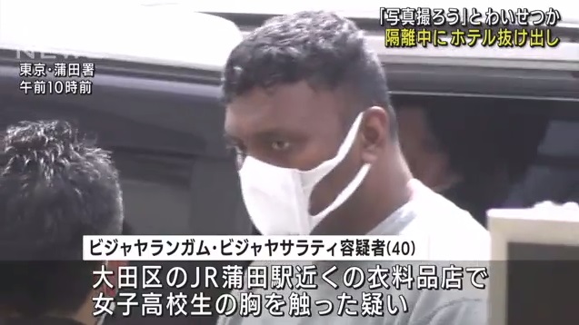 インド人のビジャヤランガム・ビジャヤサラティ容疑者(40)は19日、JR蒲田駅近くの衣料品店で女子高校生の胸を触った疑いが持たれています。