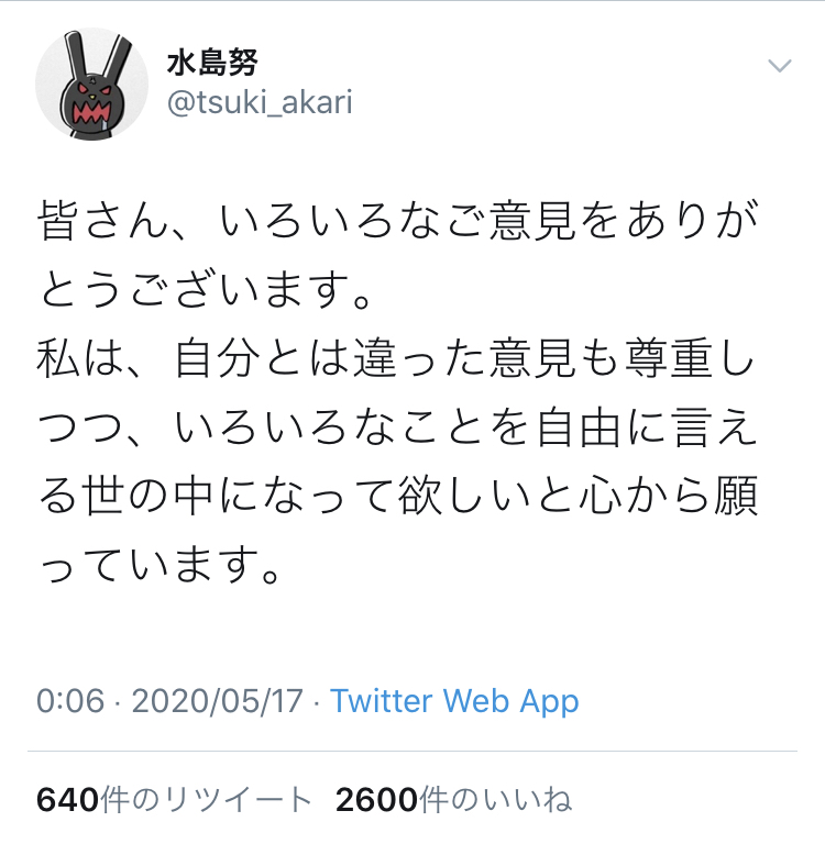 他の有名人が称賛されてこいつだけ炎上してるのは政治的発言じゃなくて、幼稚な人間性が問題になってるだけ - 108 : 2020/05/17(日) 09:46:24.51 ID:fjdx6bRD0