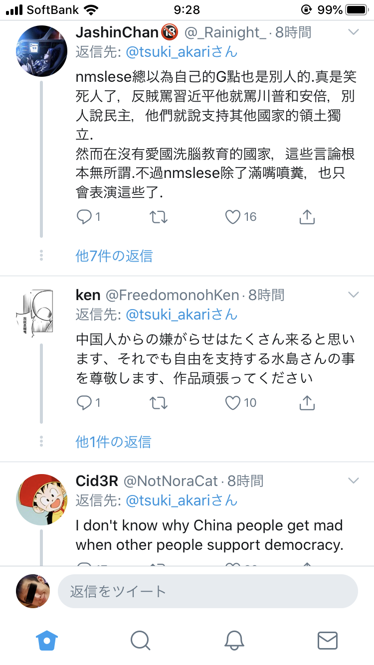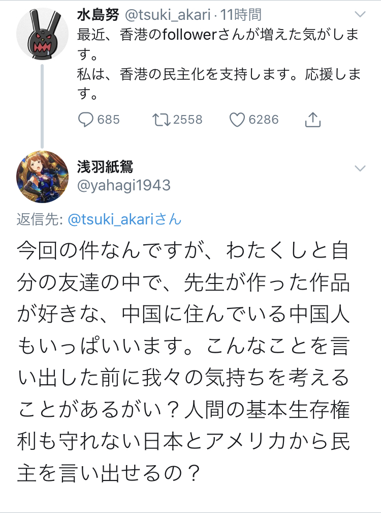 - 水島精二も香港応援してていいね