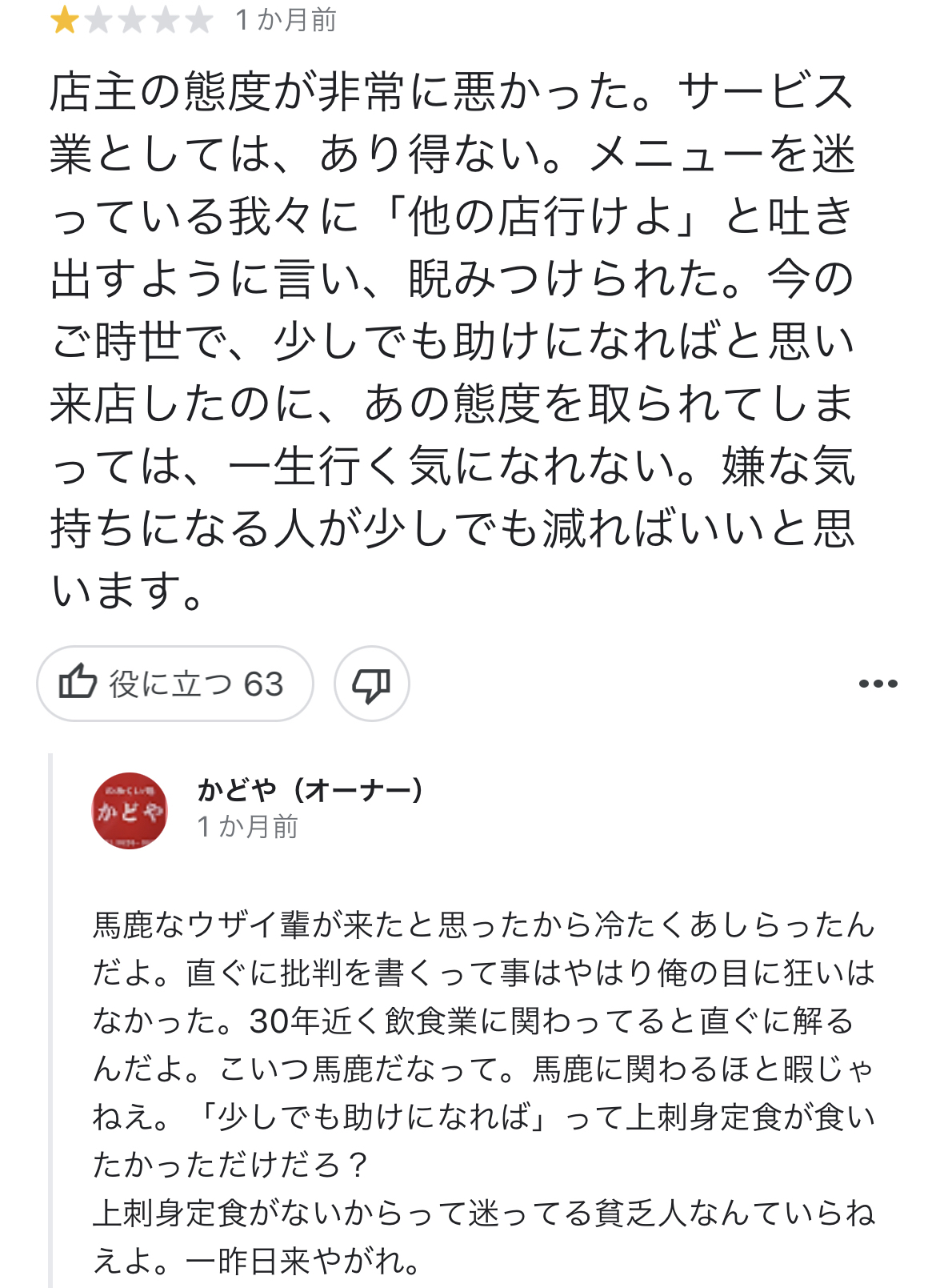 ネットでイキり散らす個人飲食店がどれくらい影響あるのか興味あるからもっとやってほしい