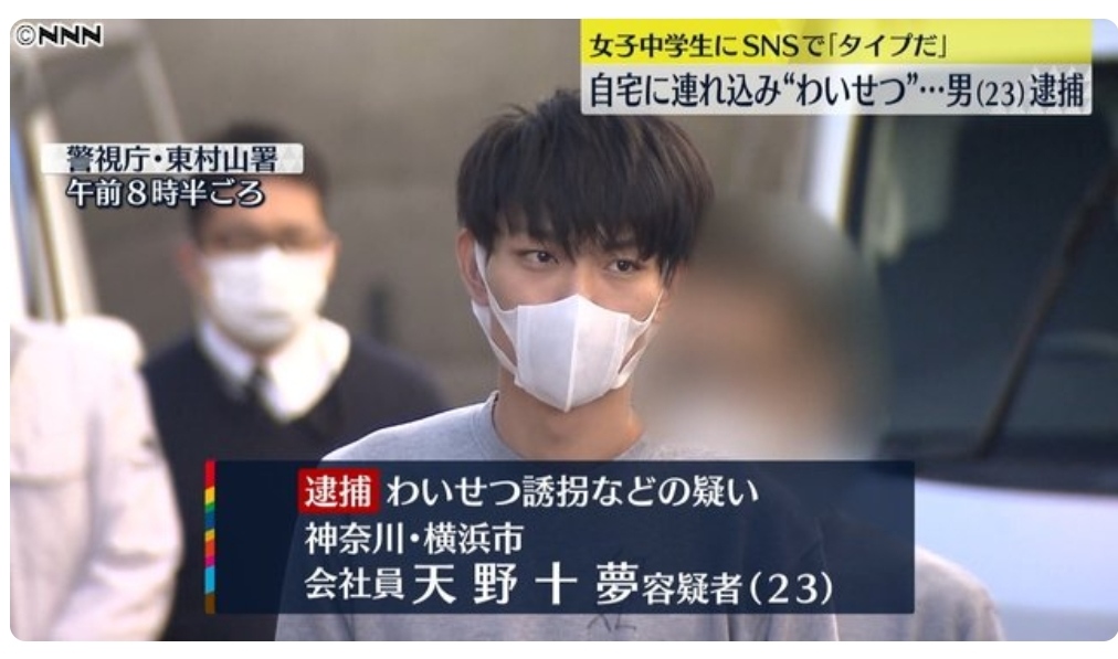 「やばいと思ったが性行為したかった」 SNSで知り合った女子中学生にわいせつな行為をした会社員の天野十夢さん23歳を逮捕 横浜市