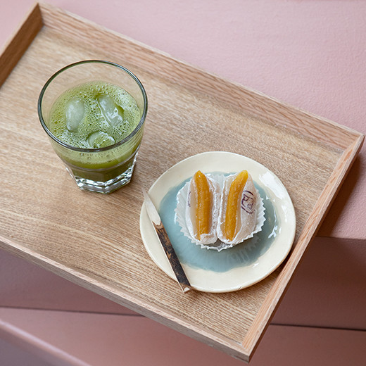 アイス抹茶Matchassoやカプチーノなどを飲みながら……。モチは1個3.5ユーロ(イートインは4ユーロ)。photo:Furoshiki
