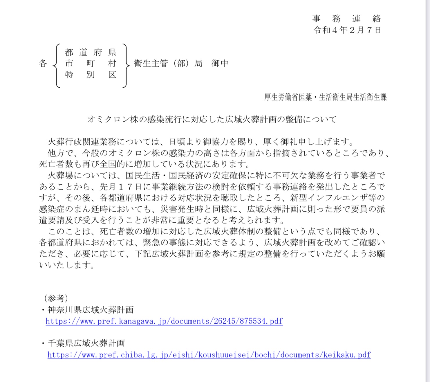 葬儀業界の業績が右肩下がりで火葬場も年々閉鎖されている所が増えているのに今更対応させる必要ある?