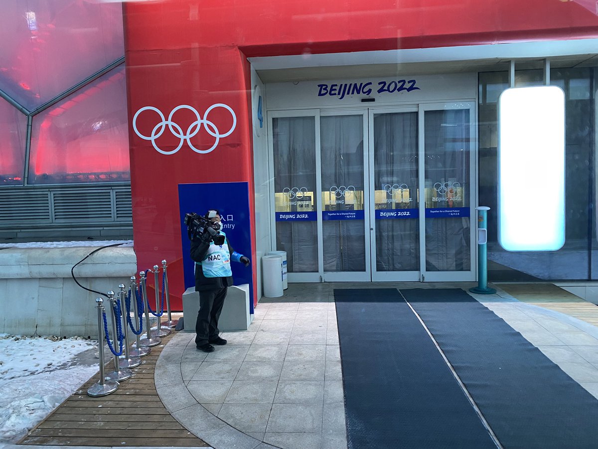 北京五輪を現地取材する米カーリング記者、プライス・アトキンソン氏は会場外でカメラを構える男性を紹介。「カーリング女子準決勝まで2時間以上もあるが、日本のテレビカメラマンはチームを撮影するために入り待ちをしている」と説明した。