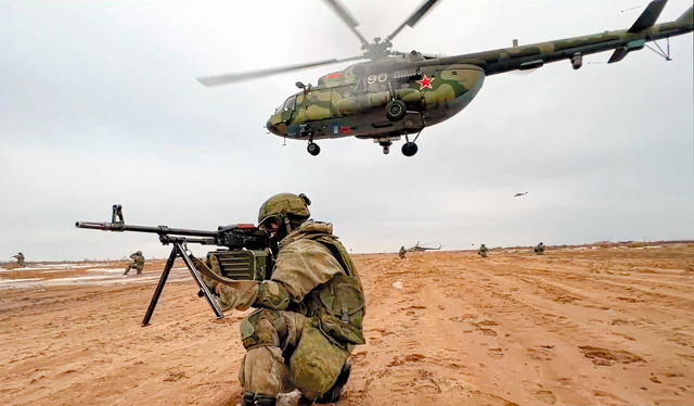 ベラルーシで実施されたロシア軍とベラルーシ軍の共同演習で、銃を構えるロシア軍兵士。ロシア国防省が19日に提供した画像から=APロシアとベラルーシの軍事演習終了へ そのまま撤収か、欧米は注視