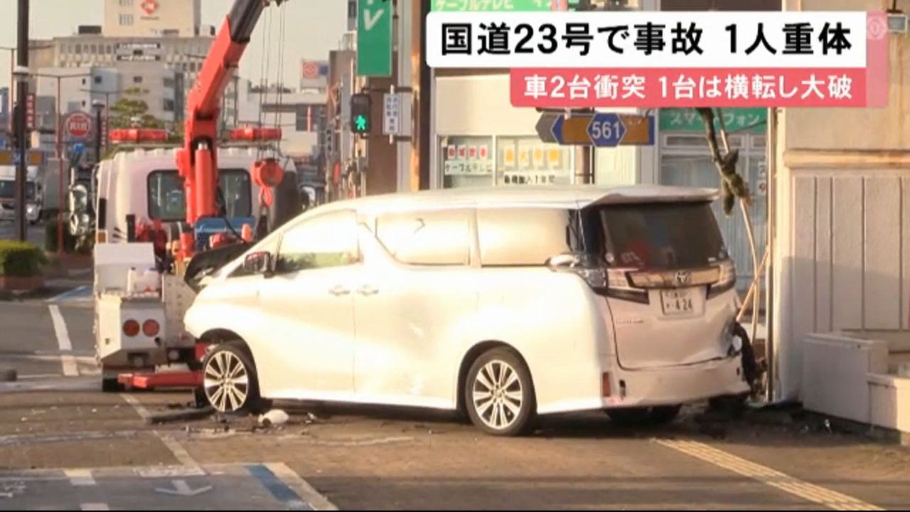 三重県津市で16日早朝、国道23号の交差点で車同士が衝突し、男性1人が意識不明の重体となっています。