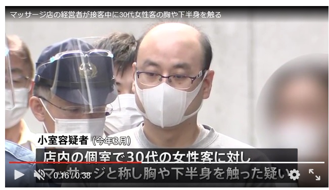 胸や下半身をマッサージした小室容疑者を逮捕(ご尊顔あり)
