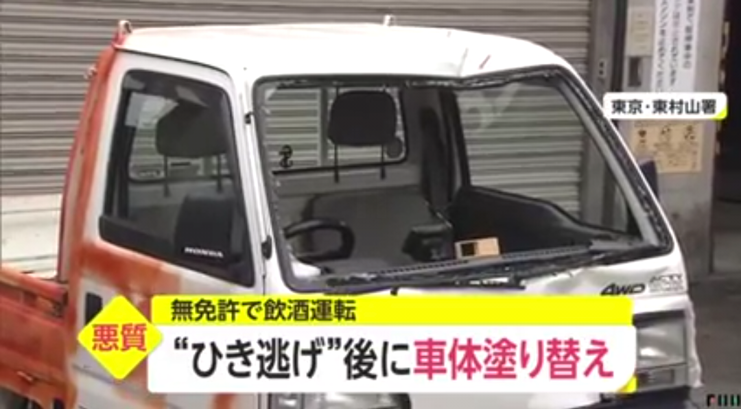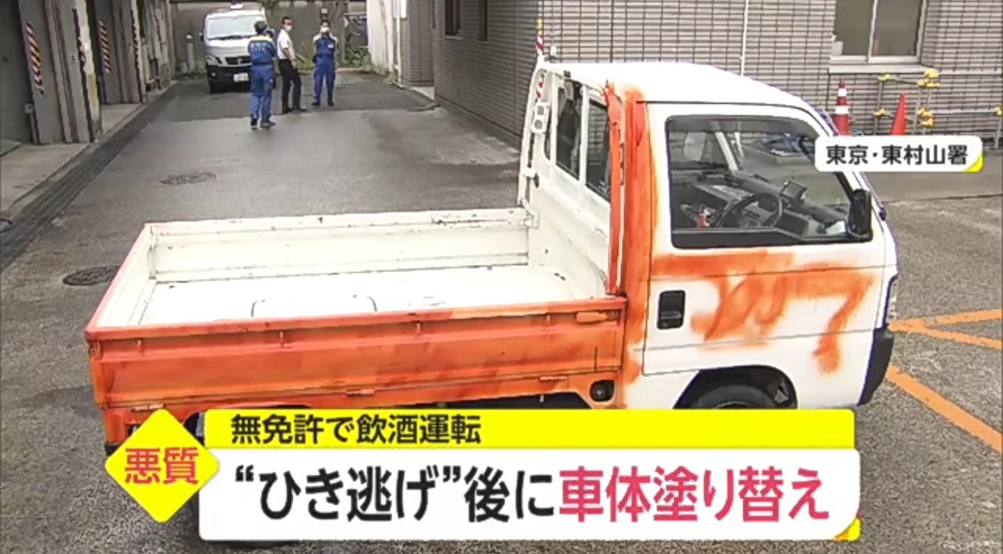 ひき逃げ容疑の男、事故後に車体を塗り替え 無免許で酒飲み運転か