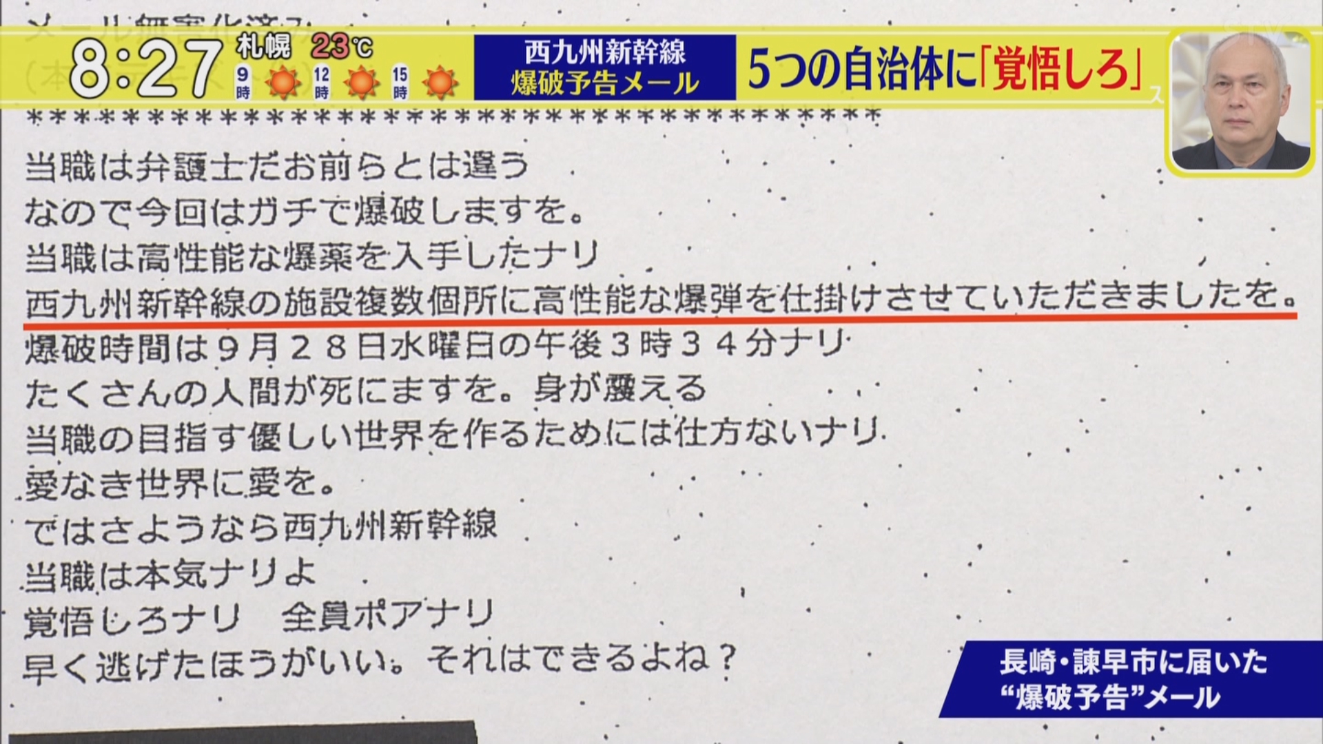 西九州新幹線が運転再開、爆破予告で一時見合わせ