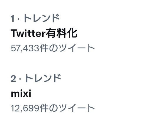 Twitterのサービス開始以前からmixiは稼働してことから、かつてmixiを利用していたユーザーを中心に「Twitterが有料になればmixiに戻るしかないのか」などのツイートが相次いで投稿されていた。このため、今回のトレンド入りに至ったようだ。