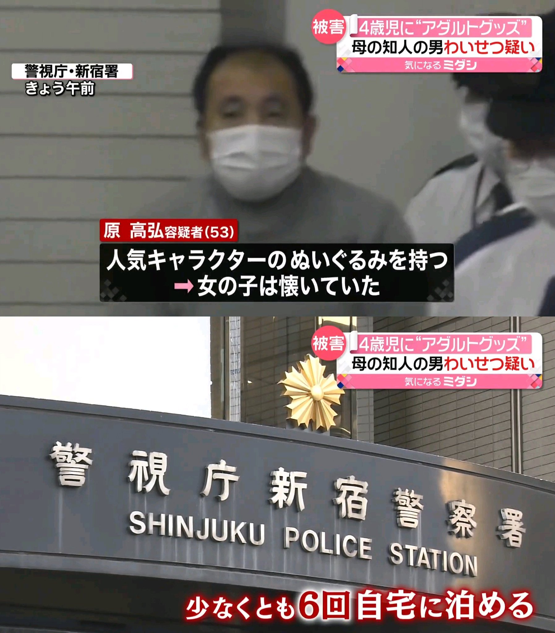 アダルトグッズを使い、東京・新宿区の自宅アパートで4歳の女の子にわいせつな行為をしたとして、53歳の男が警視庁に逮捕されました。