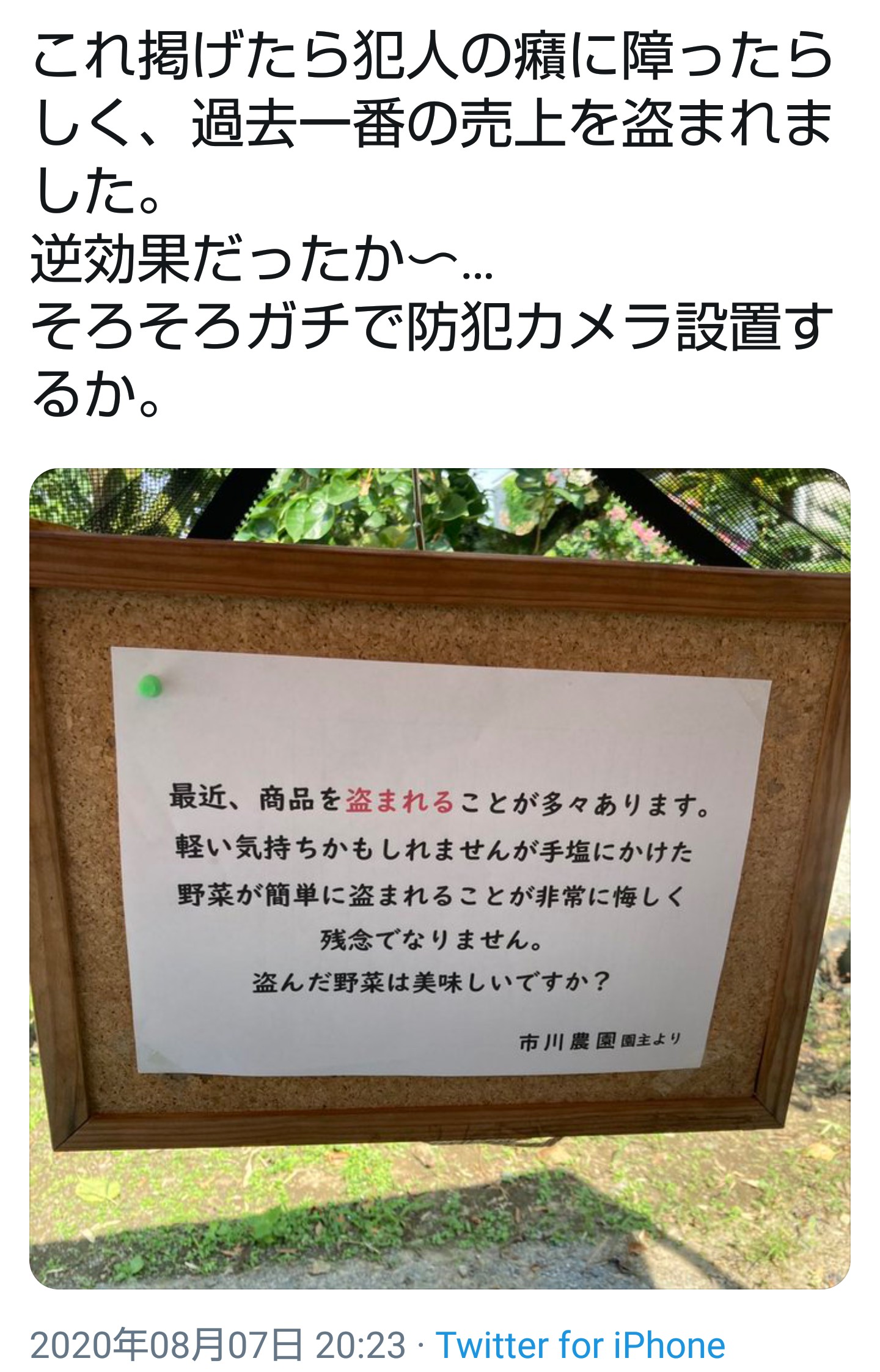 こんな煽り文書いておいて盗まれた物が野菜だけで感謝せえよ