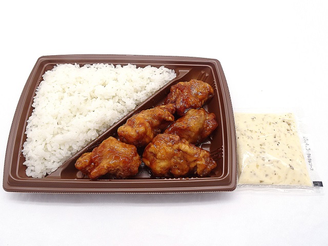 若年層に人気という「チキン南蛮弁当」。鶏肉はしっとりと柔らかく仕上げたとのことです。熱量は839kcal。