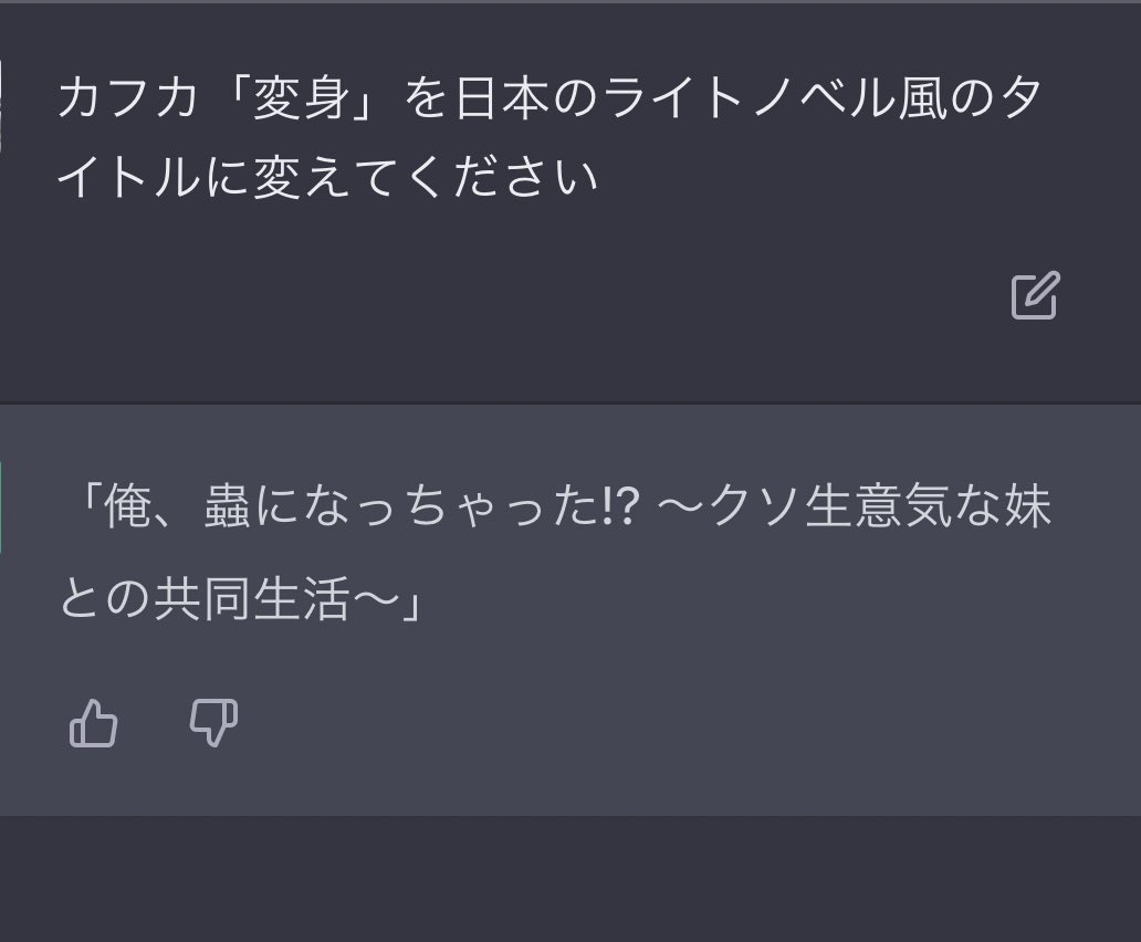 適当なラノベの概要教えてって聞いても無関係でめちゃくちゃな作品内容を教えてきて笑う - 40 : 2023/03/06(月) 16:09:56.17 ID:C8V78oh/r