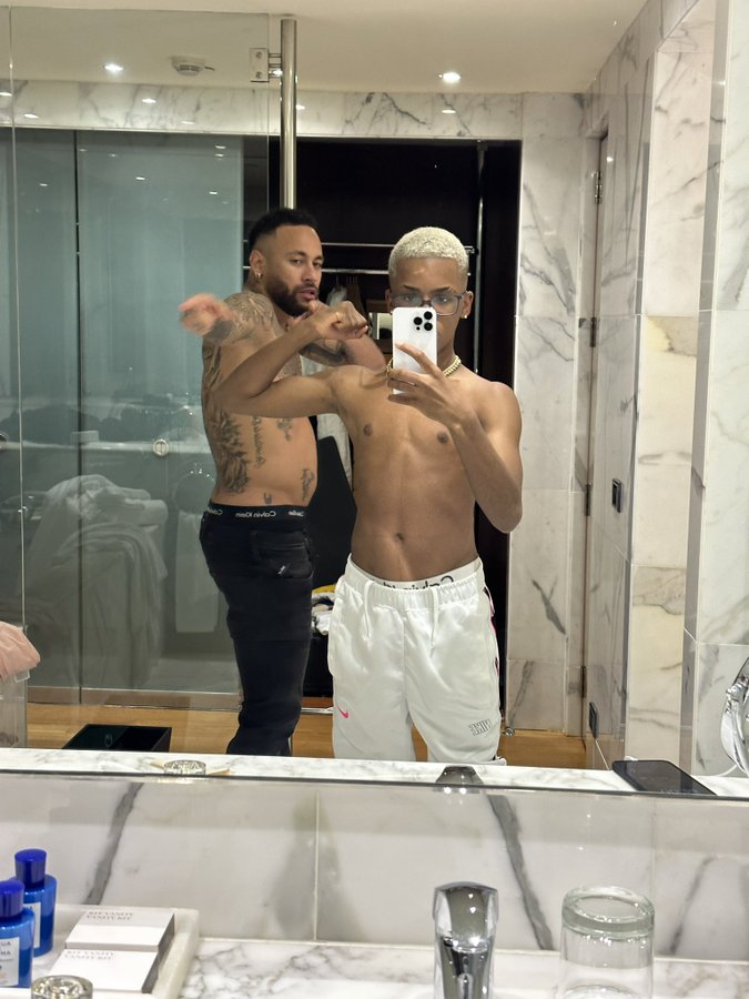 そんななか、あるSNS投稿で捉えられたネイマールの姿が話題を呼んでいる。注目されているのはフランス・パリを訪れているブラジルのインフルエンサー「Boca de 09」が投じた1枚。ネイマールとバスルームで収まった写真で上半身裸のネイマールのお腹はぽっこりと膨らんでいた。