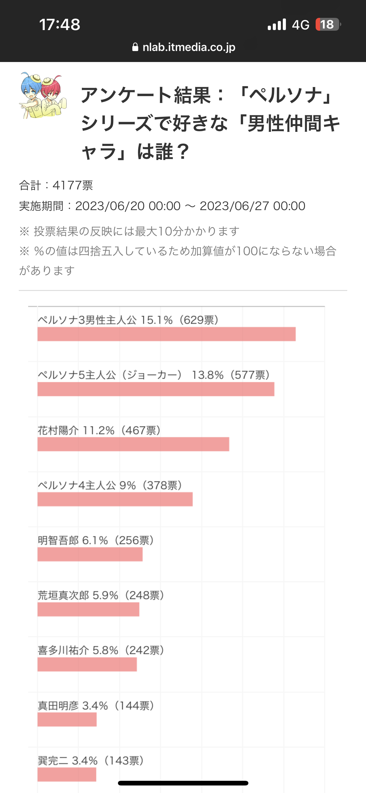 陽介上位な時点で投票してるの女が多めなんだろうけど5より3のが人気なのは意外
