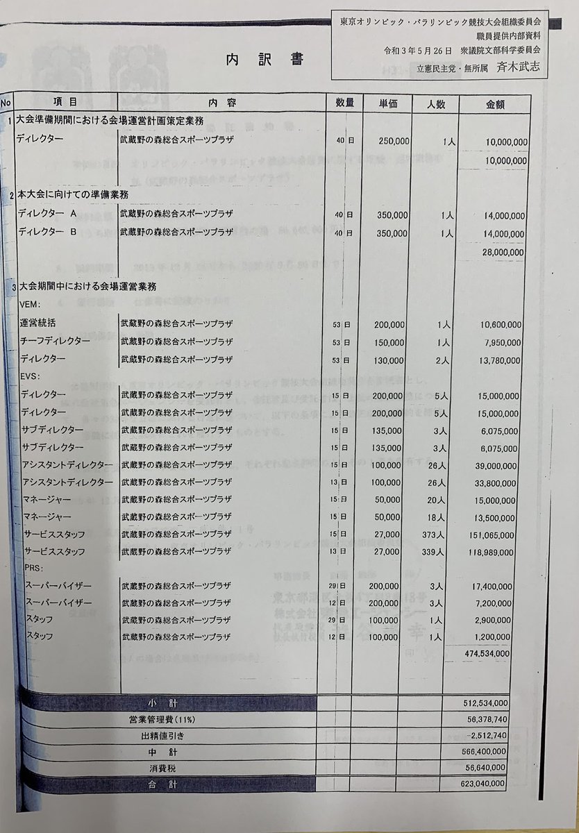 と独占的契約も明らかになった。もうかるはずである。4月19日の衆院決算行政監視委員会ではこのでたらめな契約に五輪相・丸川珠代が「守秘義務で見せてもらえない資料がある」と困った顔を見せたが、