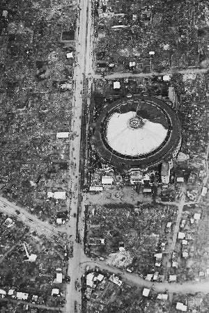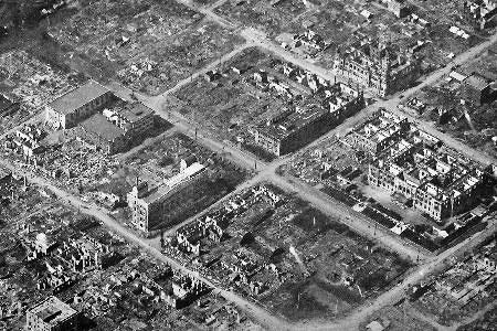 壊滅的な被害を受けた横浜市中心部。右端は神奈川県庁