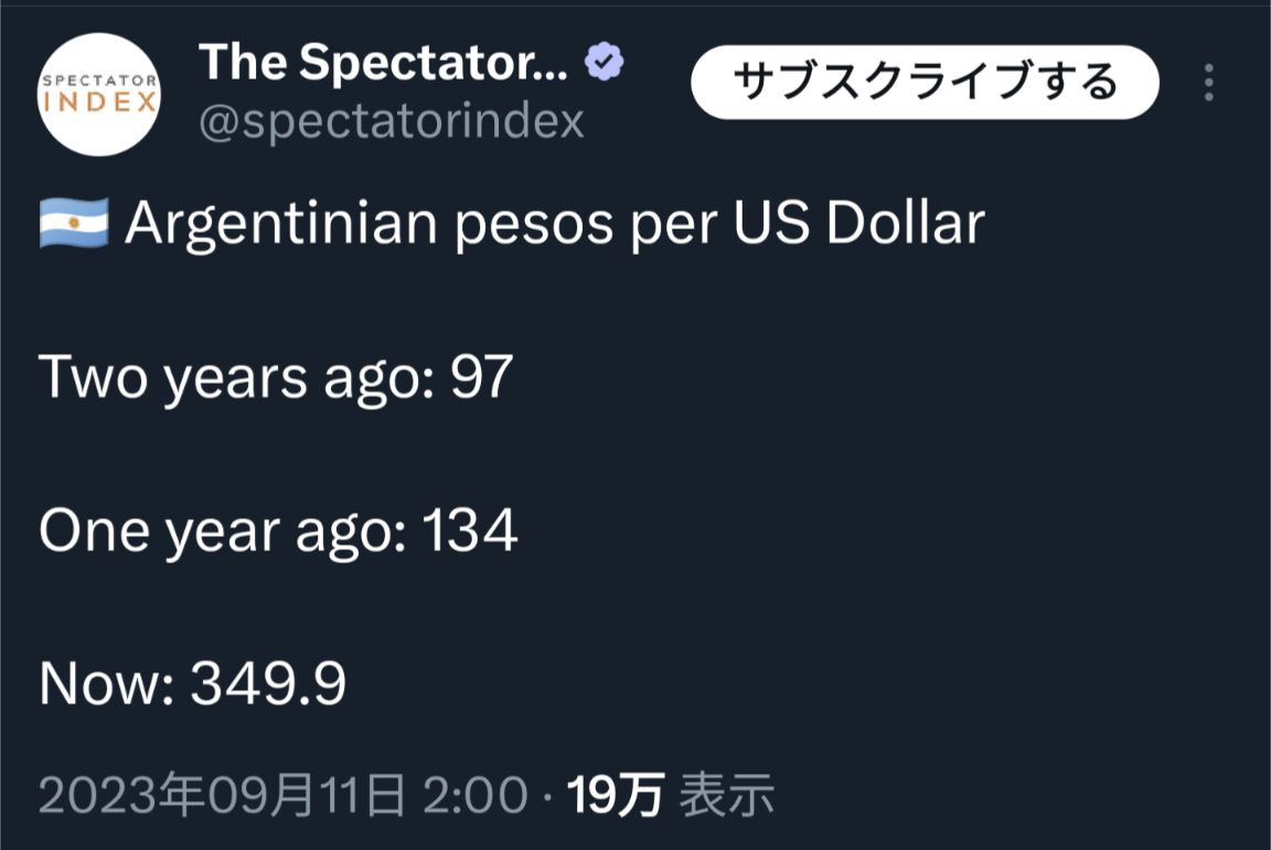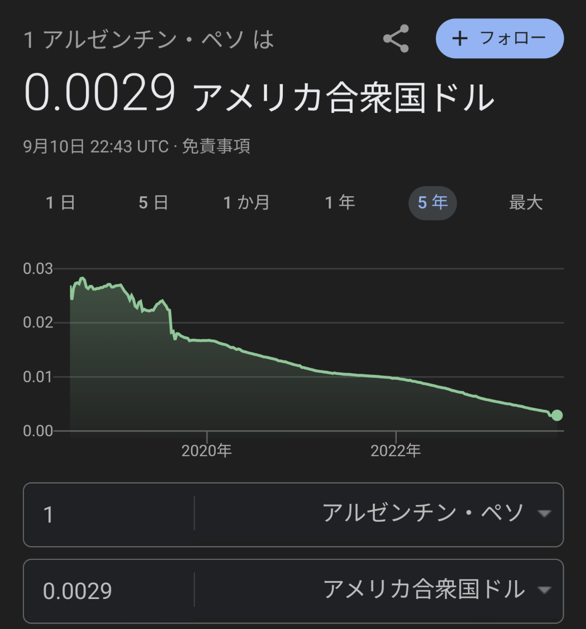 アルゼンチンペソの暴落ぶりがヤバい。これ未来の円だろ