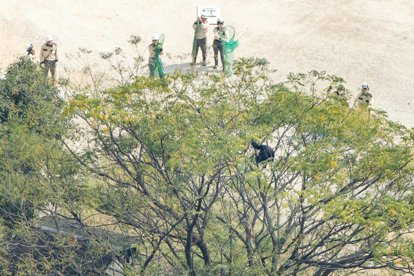 木の上に登っていたところ、午前11時ごろに獣医師が撃った麻酔銃が命中。園の職員らが網などを持って見守ったが、午後1時半ごろに木の上から落下して捕獲された。レモンは指に擦り傷を負ったが、大きなけがはなかったという。