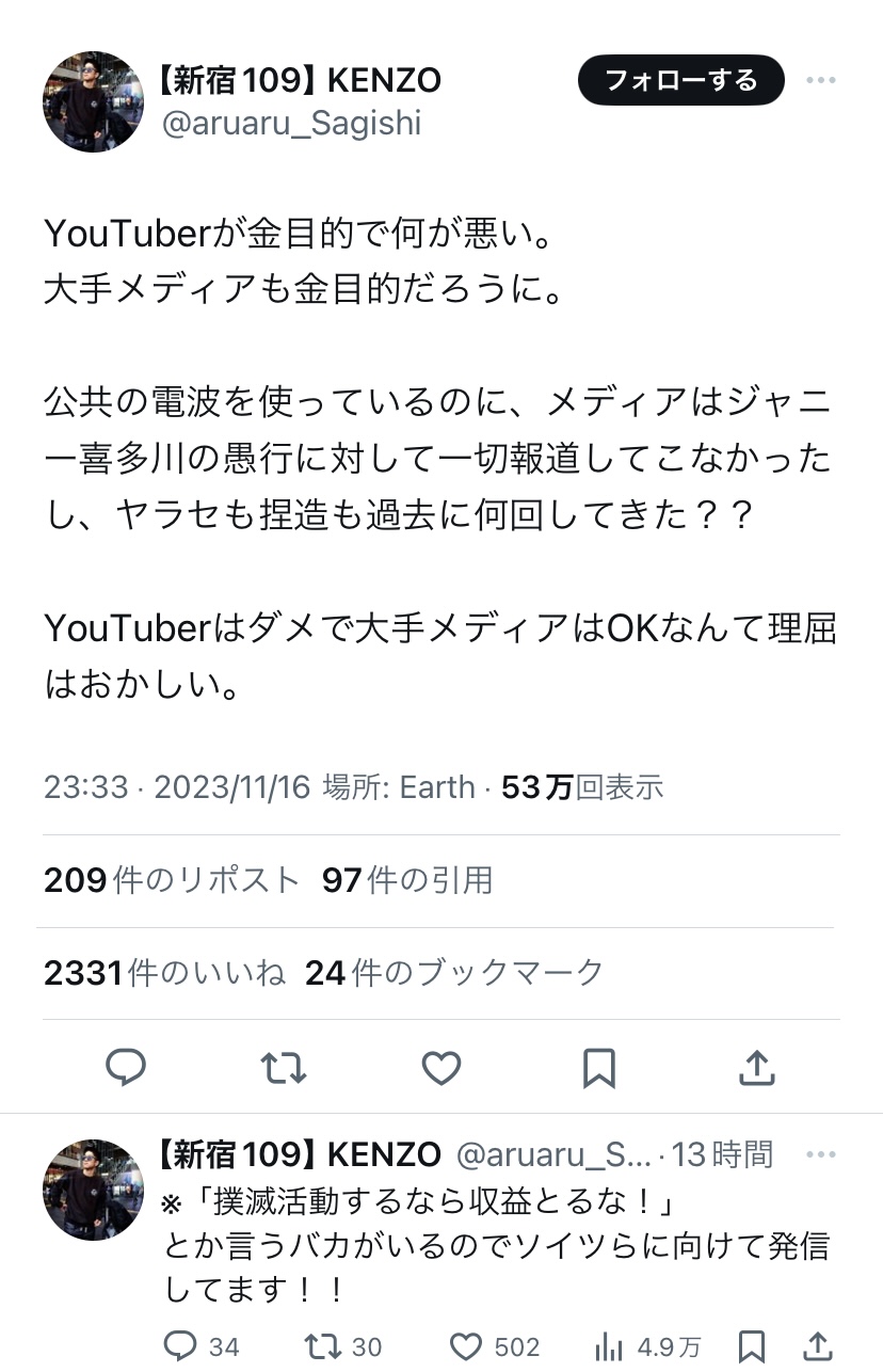 それが金目的になるなら非難されるに決まってんだろ - 30 : 2023/11/17(金) 13:36:01.03 ID:hdutWCZ10