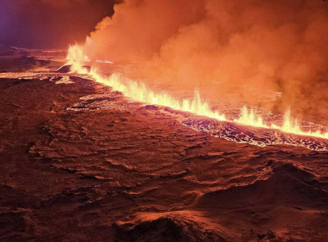 噴火はグリンダビークから約4キロの地点で発生。地面の割れ目から溶岩が噴き出し、四方に流れているという。