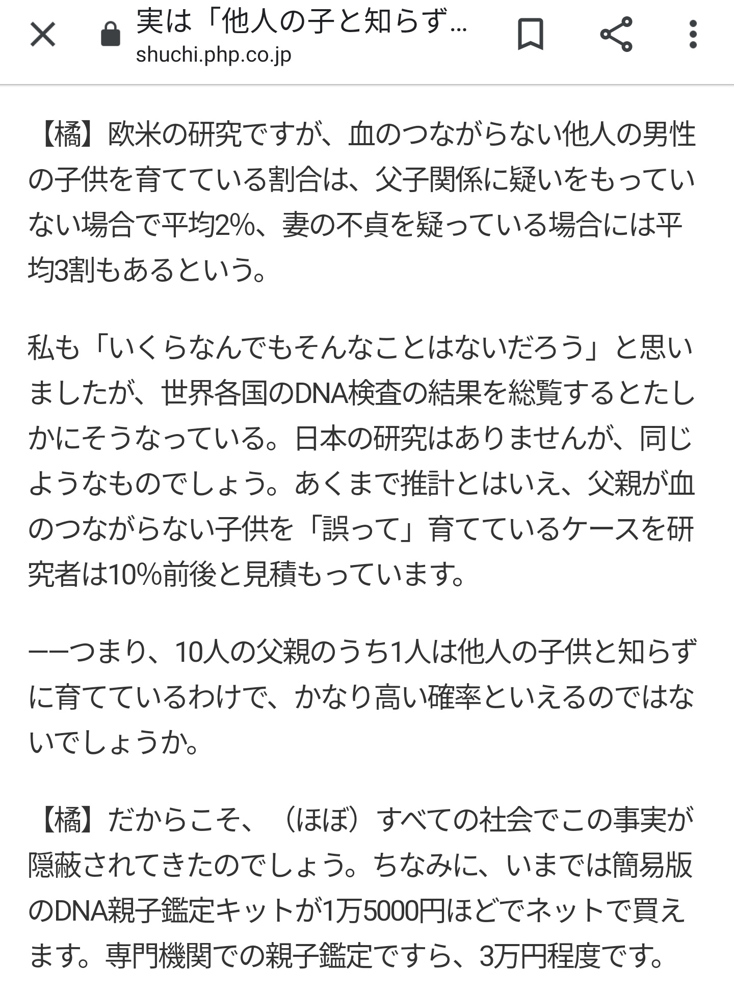 10人に1人は別の父親に育てられてるらしい