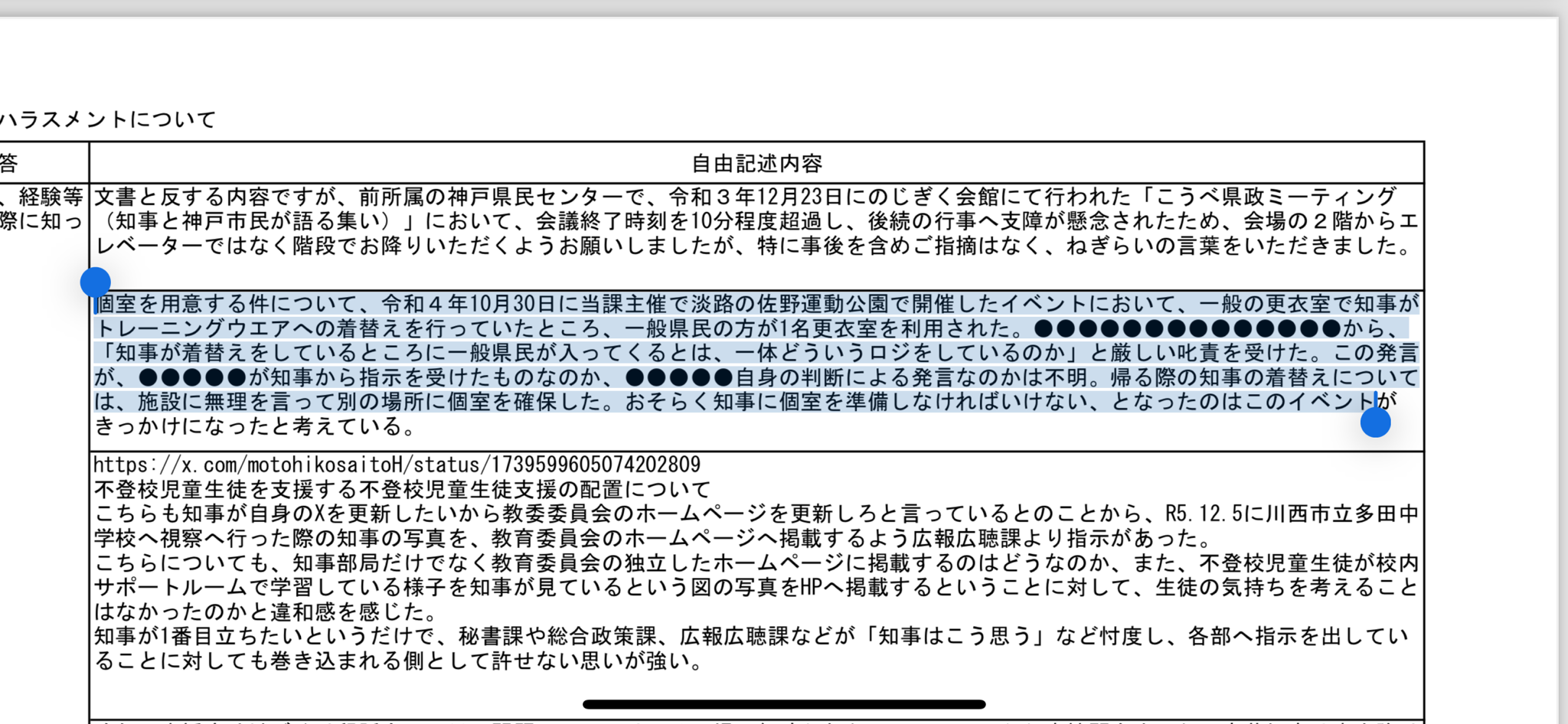 この発言 が、●●●●●が知事から指示を受けたものなのか、●●●●●自身の判断による発言なのかは不明。