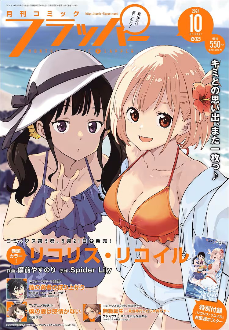本日9月5日発売の月刊コミックフラッパー10月号(KADOKAWA)は、付録に「リコリス・リコイル」のお風呂ポスターが用意されている。