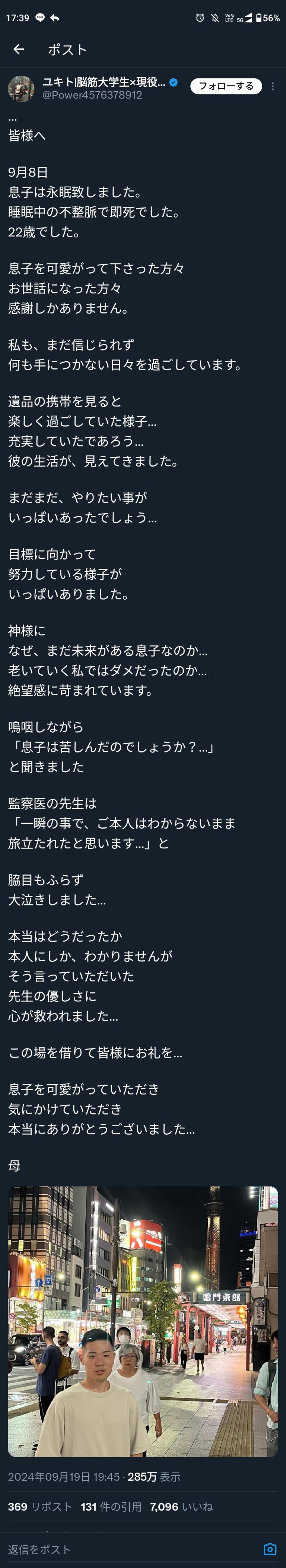 インフルエンサーとかならまだしもこういう雑魚ユーザーが死んで親族がポストって恥ずかしすぎて草