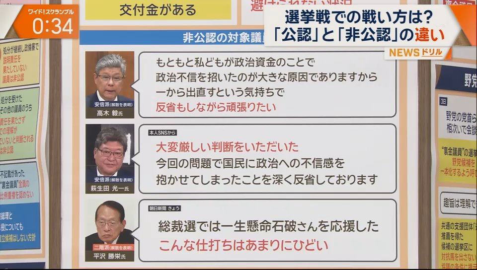 「裏金議員は非公認」なんて、総裁選前に言ってくれって話なんだろうけど - 15 : 2024/10/07(月) 14:22:59.09 ID:/NdcSTa00