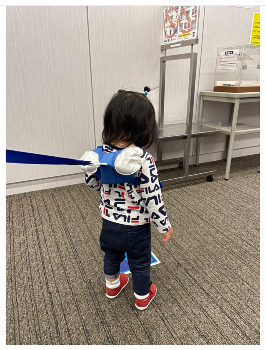 ハーネスの範囲内なら自由に動き回れるし手を繋ぐより子供も楽だわな
