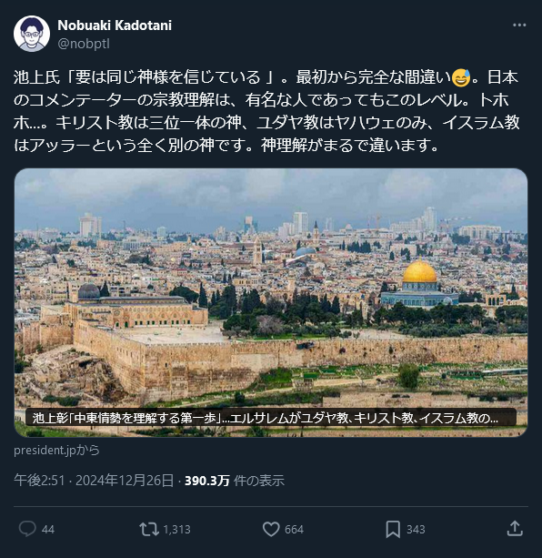 ユダヤキリストイスラムの信仰する神が同じってすげえよな