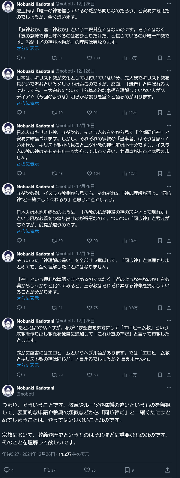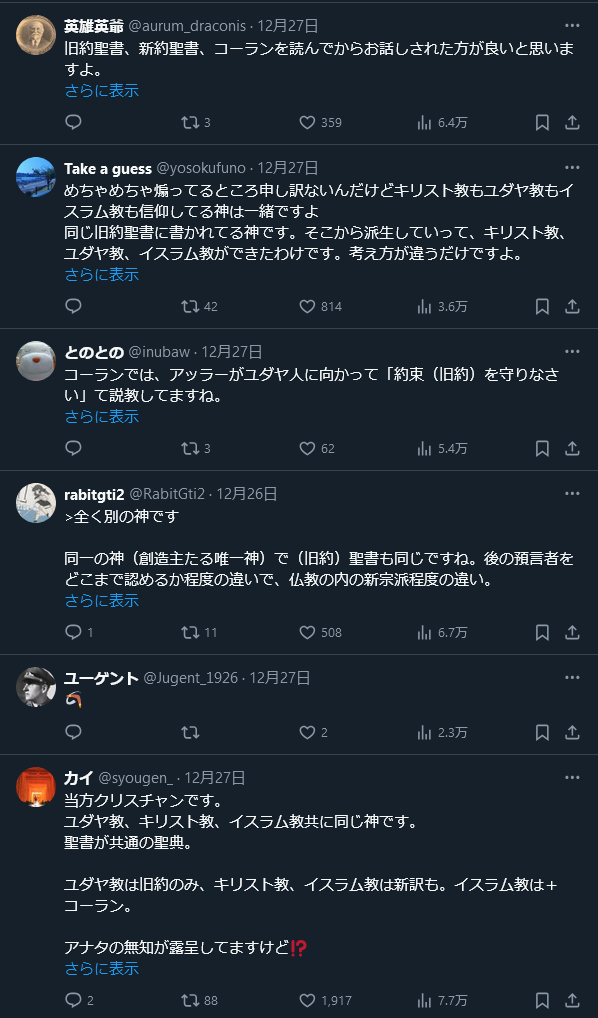 宗教の話に、神学者ほどではないが相当な知識を持つ人がコメントすると、重箱の隅をつつくリンチが始まるのに
