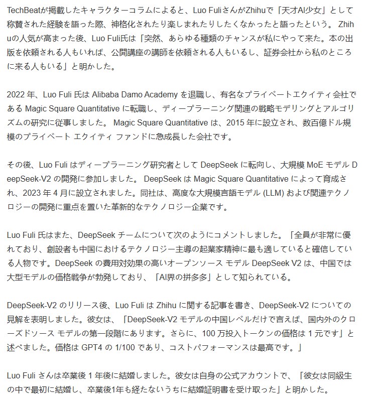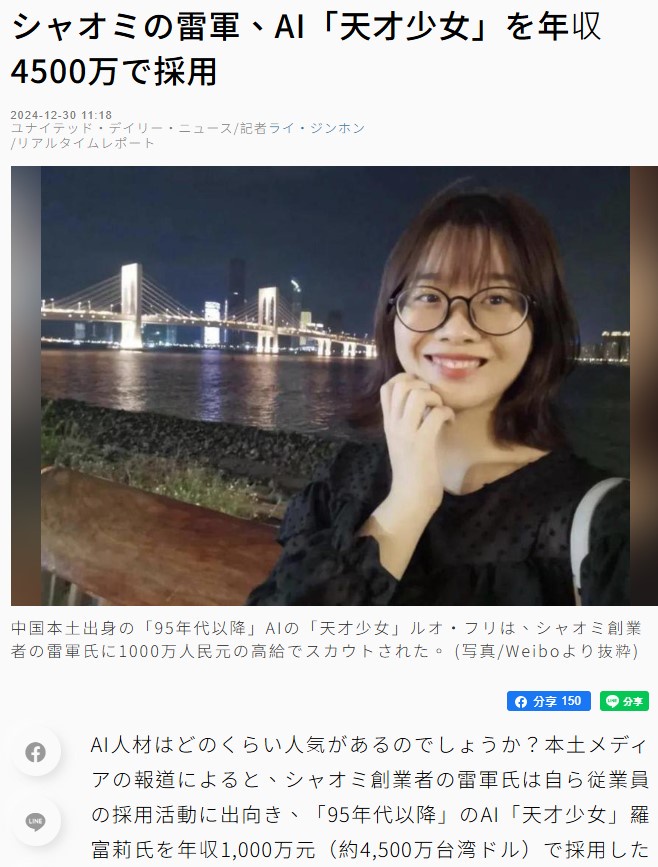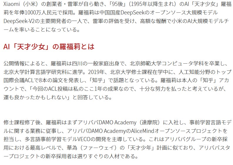 中国国産AI「DeepSeek」を開発した天才・羅福莉ちゃんが美少女すぎると話題