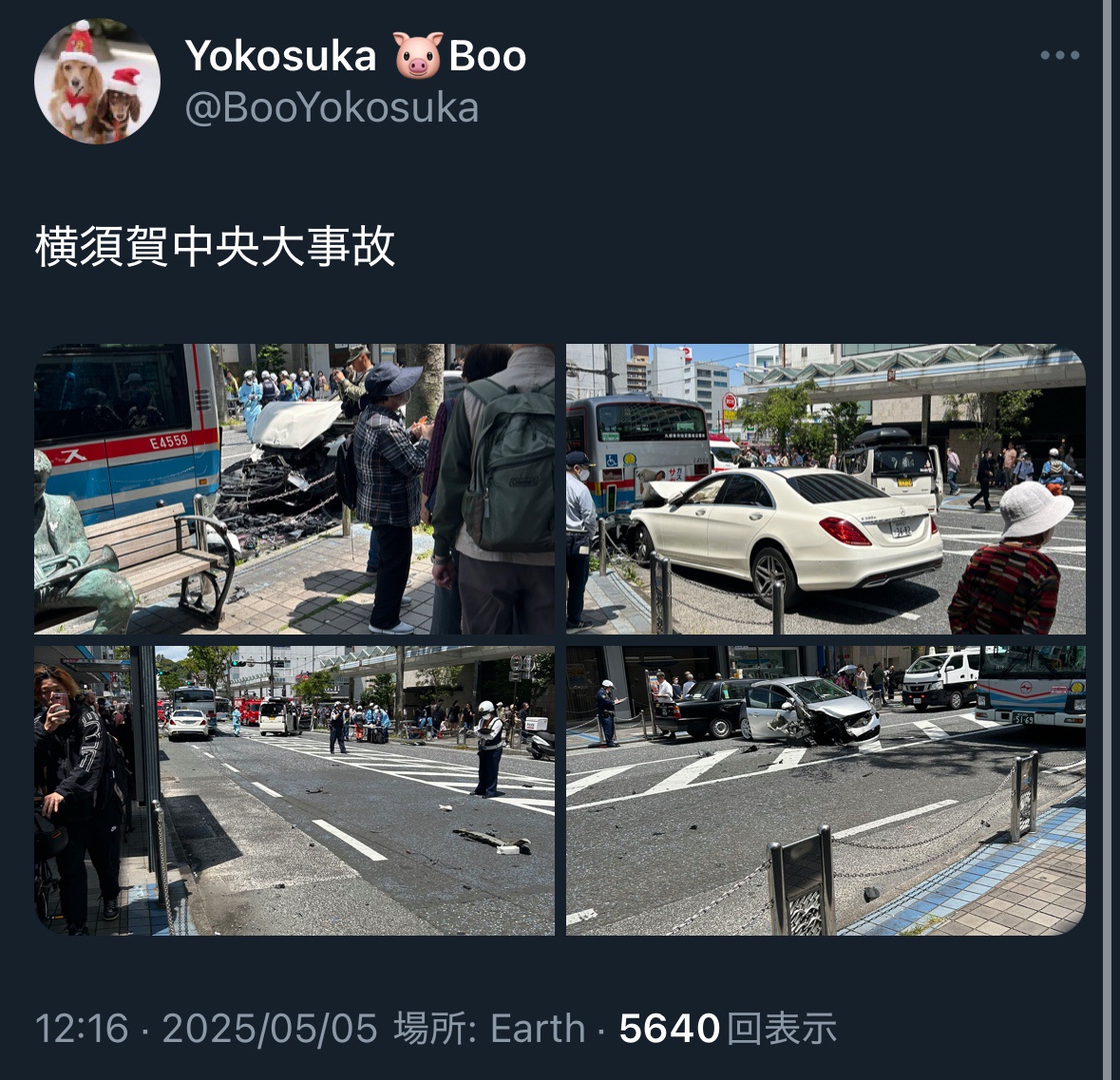 横須賀中央駅付近でバスなど絡む多重事故、11人負傷。関係車両のうち1台を運転していた男を酒気帯び運転容疑で現行犯逮捕
