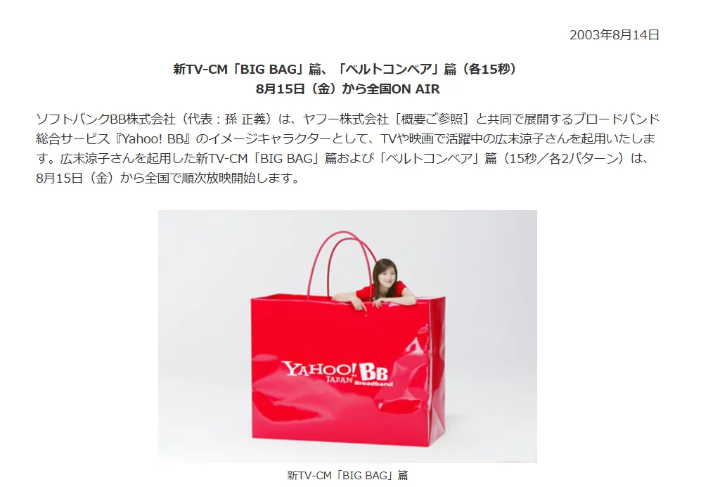 業界最大手のソフトバンクは2001年9月に「Yahoo! BB ADSL」ブロードバンド総合サービスを開始。各地で赤い袋に入ったモデムの配布キャンペーンを展開した。40代以上の方ならご記憶にあるだろう。
