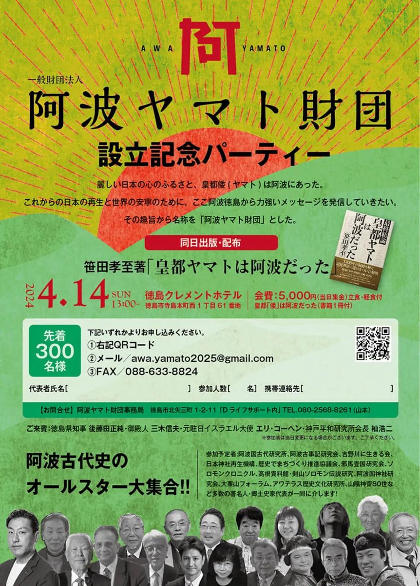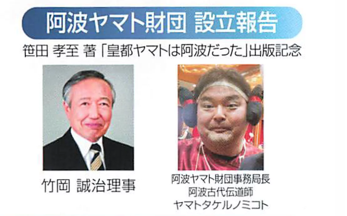 現在、竹岡氏は徳島県(阿波)に都があったと主張する「一般財団法人阿波ヤマト財団」に評議員として加わった。