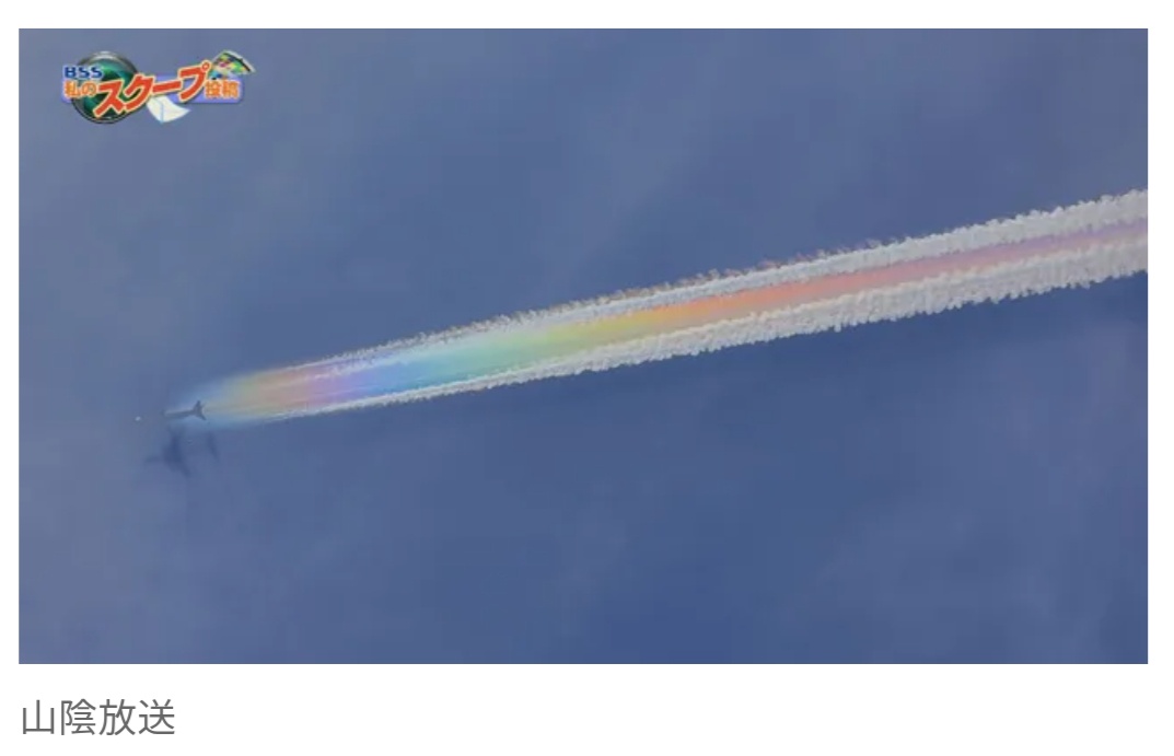 BSSのスクープ投稿に驚きの写真が届きました。飛行機雲が鮮やかな虹色になっているんです。