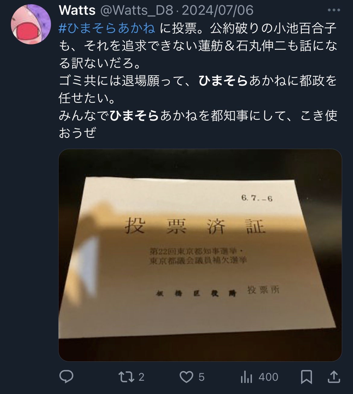 石丸とか井川は喧嘩買ってくれたけど安野はまじでまともだから暇さんの相手してくれなさそう🥺