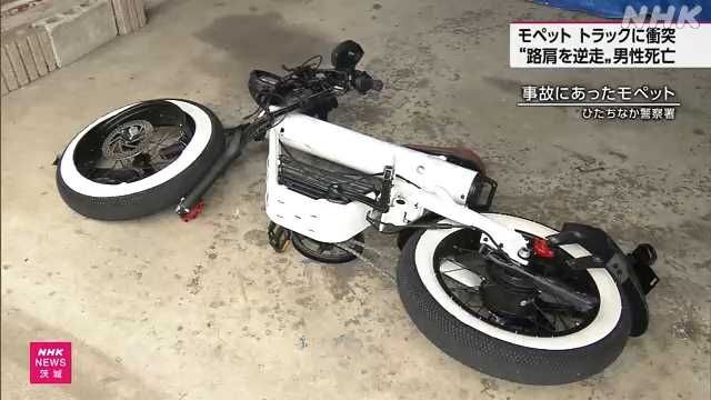 11日朝、茨城県ひたちなか市の国道で「モペット」と呼ばれるペダル付き電動バイクが中型トラックと正面衝突し、運転していた41歳の男性が死亡しました。